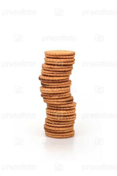 Круглое печенье с шоколадной начинкой, изолированное на белом фоне