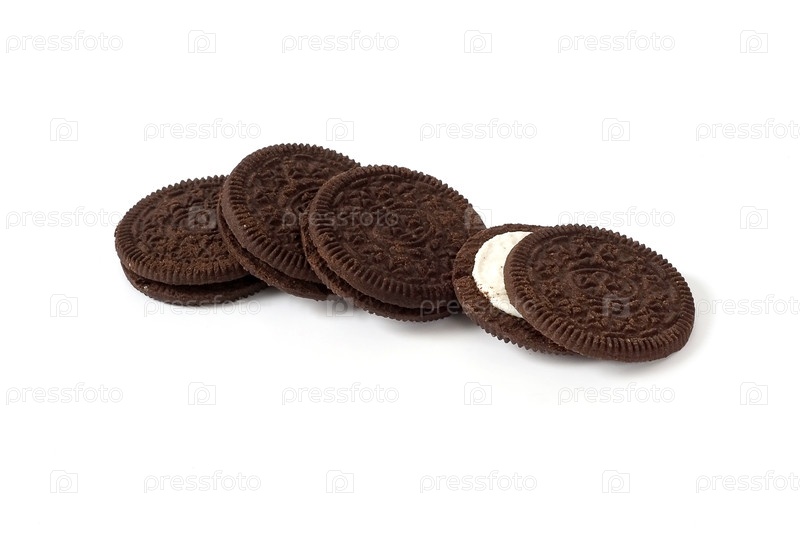 Шоколадное печенье с белой кремовой начинкой, изолированное на белом фоне