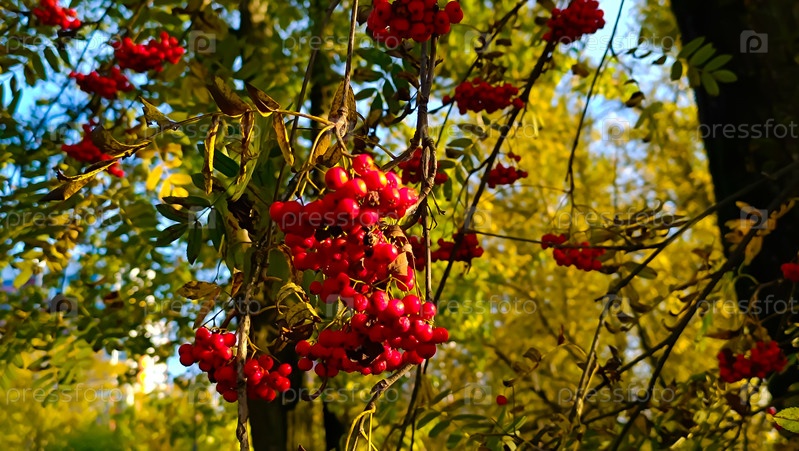 Осенний пейзаж .Рябина (Sorbus) крупным планом