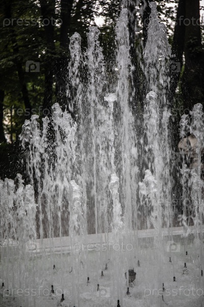 Фонтан в парке летнего сада крупным планом летом