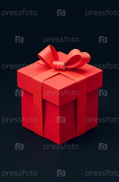 Красная подарочная коробка с лентой на черном фоне. Сгенерировано искусственным интеллектом