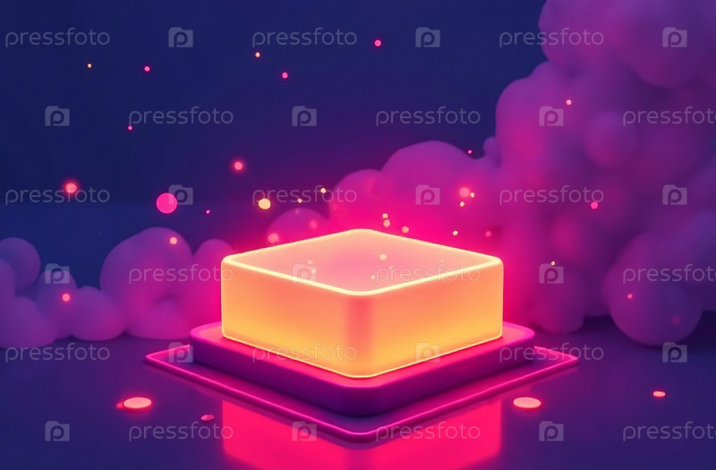 Абстрактный светящийся неоновый прямоугольник, виртуальный фон киберпространства. Генеративный ИИ