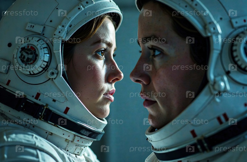 Портрет женщины-астронавта в шлеме скафандра на фоне космоса. Генеративный искусственный интеллект