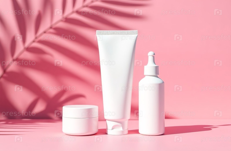 Макет белой тюбиковой бутылки косметической баночки на розовом фоне. Генеративный ИИ