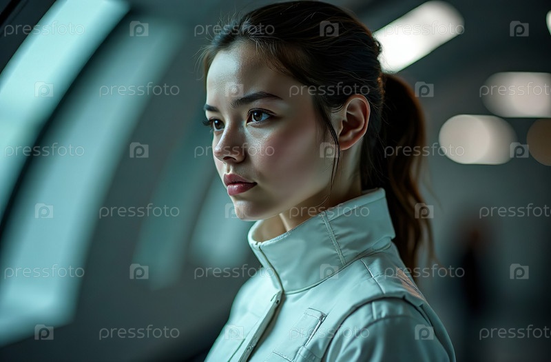 Человек-гуманоид в мире будущего космической научной фантастики. Генеративный искусственный интеллект