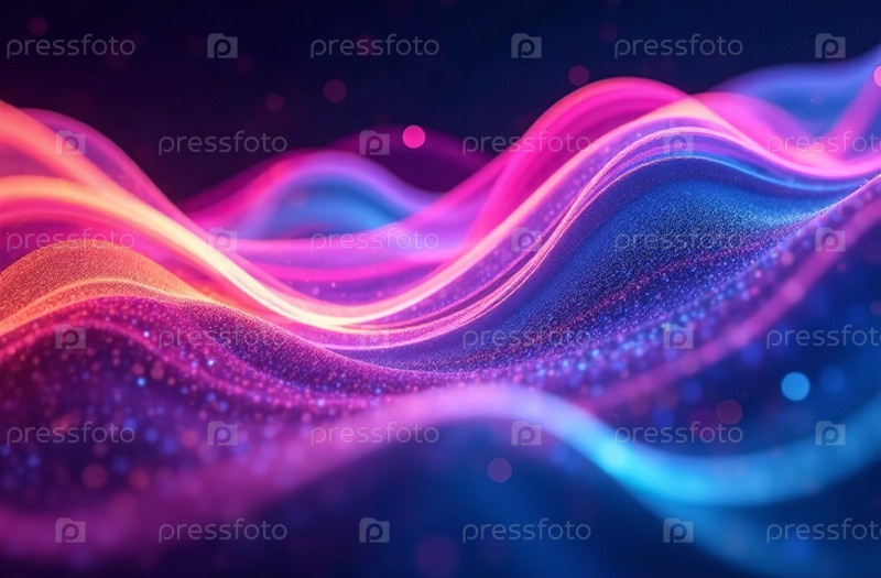 Абстрактный футуристический фон, движущиеся неоново-фиолетовые волны. Генеративный ИИ