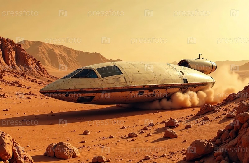 Обломки космического корабля, совершавшего исследовательскую миссию на далекой планете. Генеративный искусственный интеллект