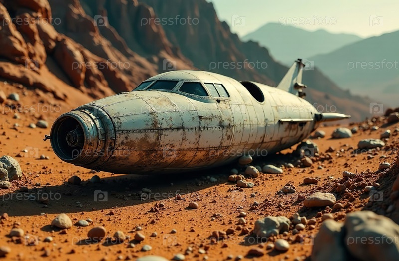 Обломки космического корабля, совершавшего исследовательскую миссию на далекой планете. Генеративный искусственный интеллект
