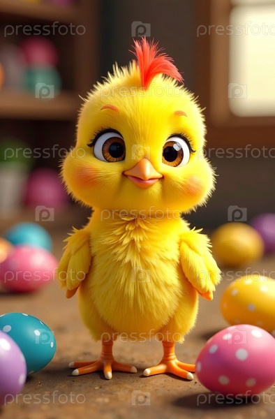 Куры и красочные пасхальные яйца в курятнике. Генеративный искусственный интеллект