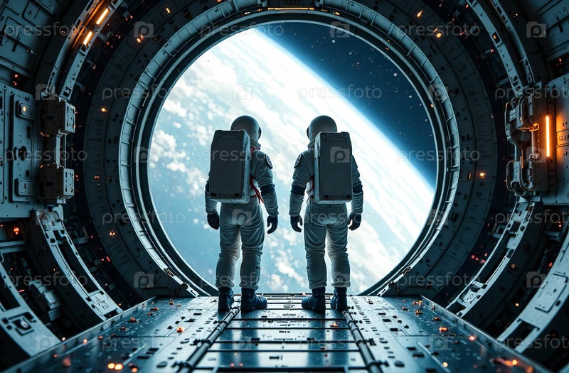 Астронавты готовятся к выходу в открытый космос шлюзовой космический корабль Генеративный искусственный интеллект