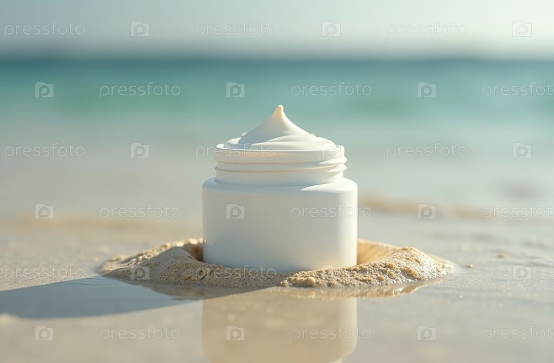 Макет белой тюбиковой бутылки косметической банки на песке пляжа. Генеративный искусственный интеллект