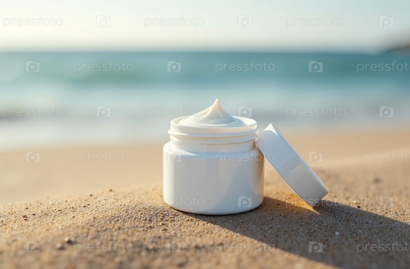 Макет белой тюбиковой бутылки косметической банки на песке пляжа. Генеративный искусственный интеллект