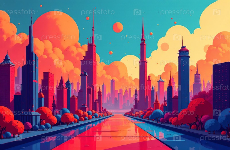 Футуризм, научная фантастика, кибергород, панорама, виртуальная реальность. Генеративный ИИ