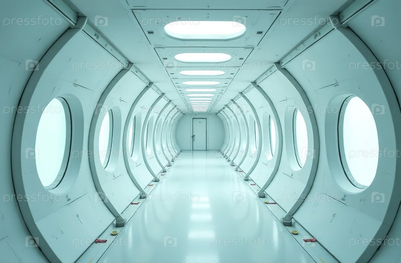 Ретрофутуризм интерьер здания, свободное пространство коридора. Генеративный ИИ