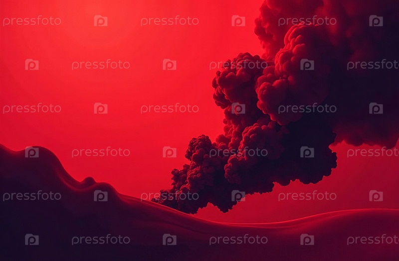 Цветное красное облако дыма, абстракция Фоновая иллюстрация. Генеративный искусственный интеллект