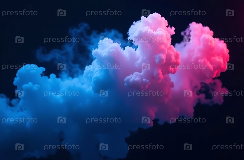 Цветной сине-розовый дым Облако, абстракция Фоновая иллюстрация AI Генеративный