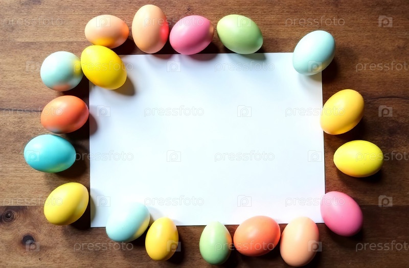 Фон с местом для текста и украшенными пасхальными яйцами. Генеративный ИИ