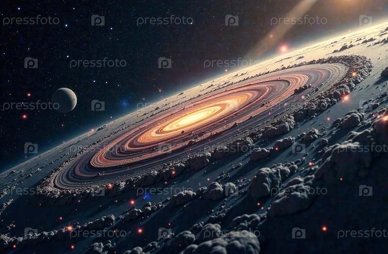 Открытая космическая астрономическая панорама звезд, спутников и планет. Генеративный ИИ