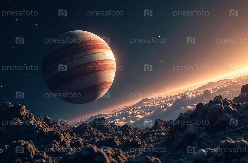 Открытая космическая астрономическая панорама звезд, спутников и планет. Генеративный ИИ