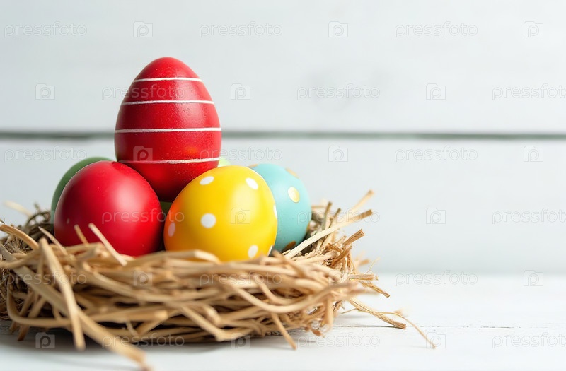 Фон с местом для текста и украшенными пасхальными яйцами. Генеративный ИИ