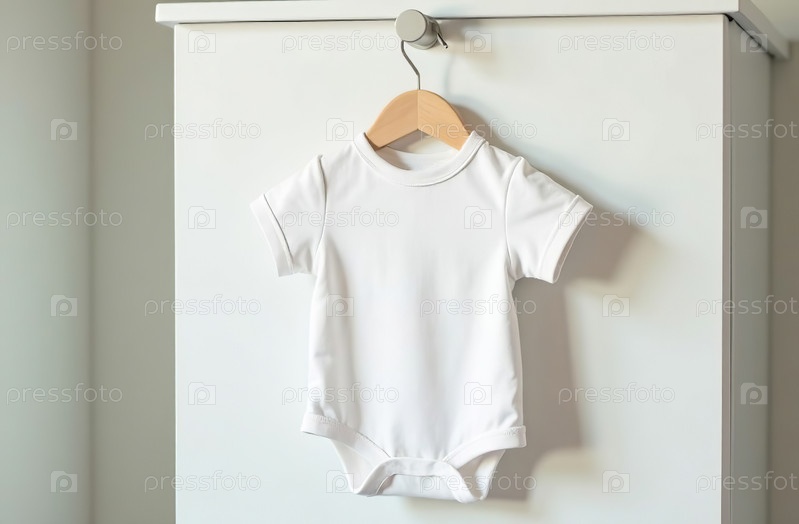 Детский белый боди для новорожденных с фоном детской комнаты. Генеративный искусственный интеллект