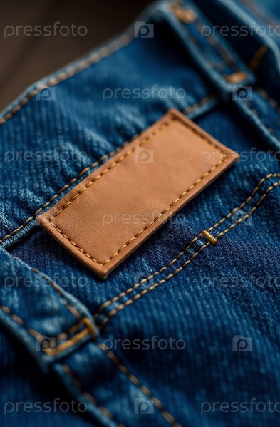 Кожаная бирка на кармане макета синих джинсов. Генеративный ИИ