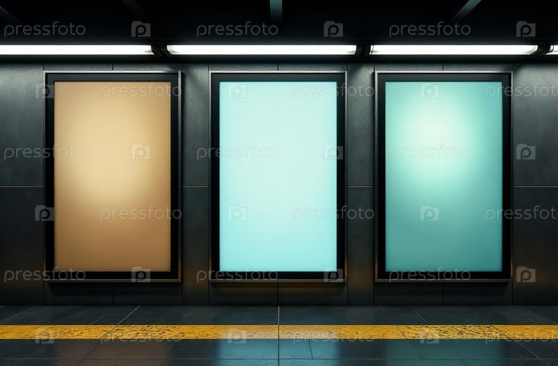 Прямоугольный белый рекламный плакат, макет рекламного щита метро. Генеративный ИИ
