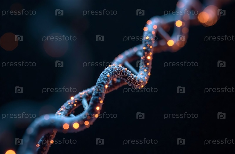 Спираль ДНК вращается на черном фоне, генетика биология клетка. Генеративный искусственный интеллект