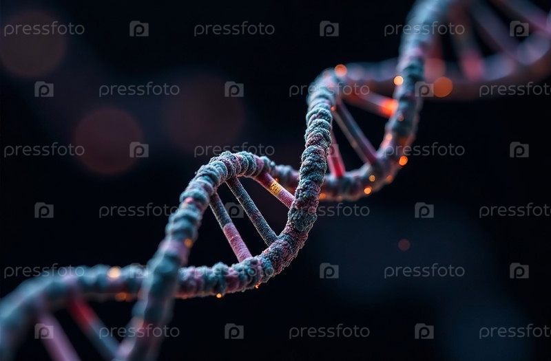 Спираль ДНК вращается на черном фоне, генетика биология клетка. Генеративный искусственный интеллект