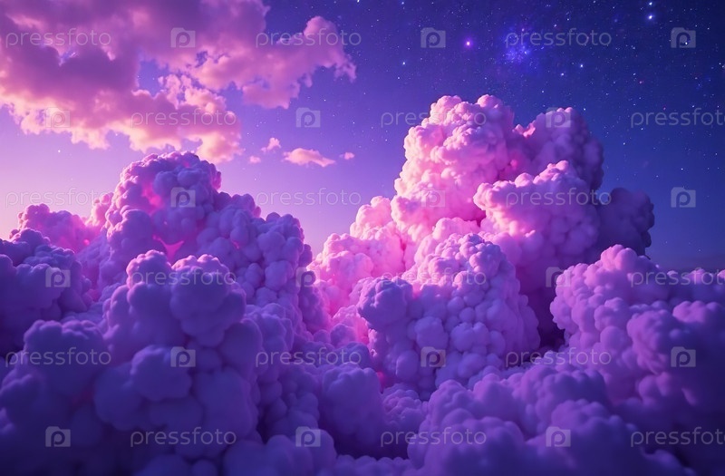 Цветной фиолетовый дым облако туман, абстрактный закат фон. Генеративный ИИ