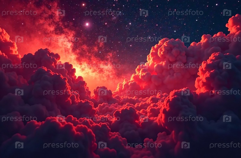 Цветной красный дым облако туман, абстрактный закат фон. Генеративный ИИ