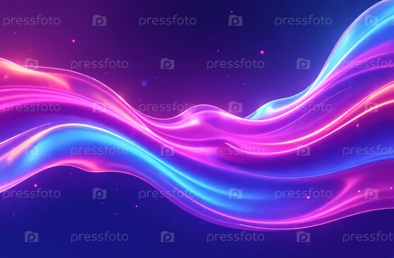 Абстрактный футуристический фон, движущиеся неоново-фиолетовые волны. Генеративный ИИ