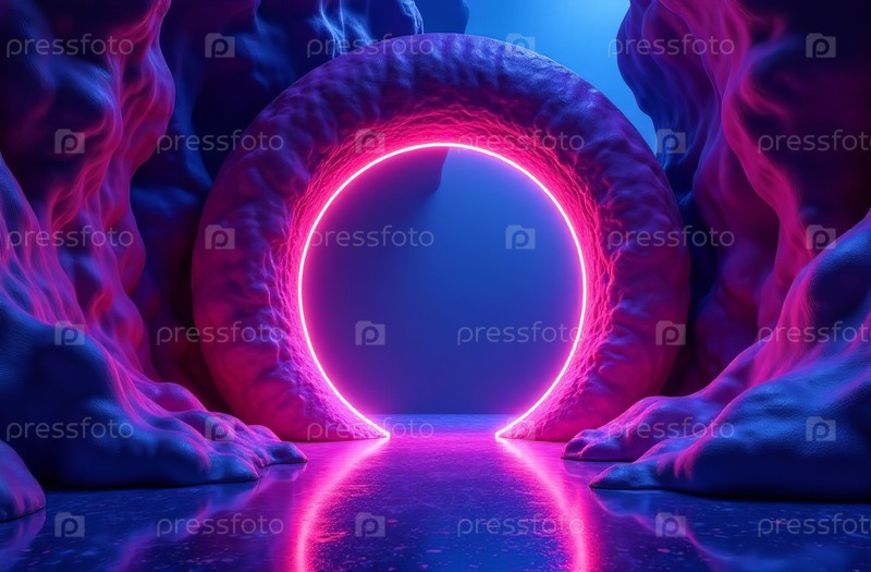 Абстрактный светящийся неоновый круг, виртуальный фон киберпространства. Генеративный ИИ