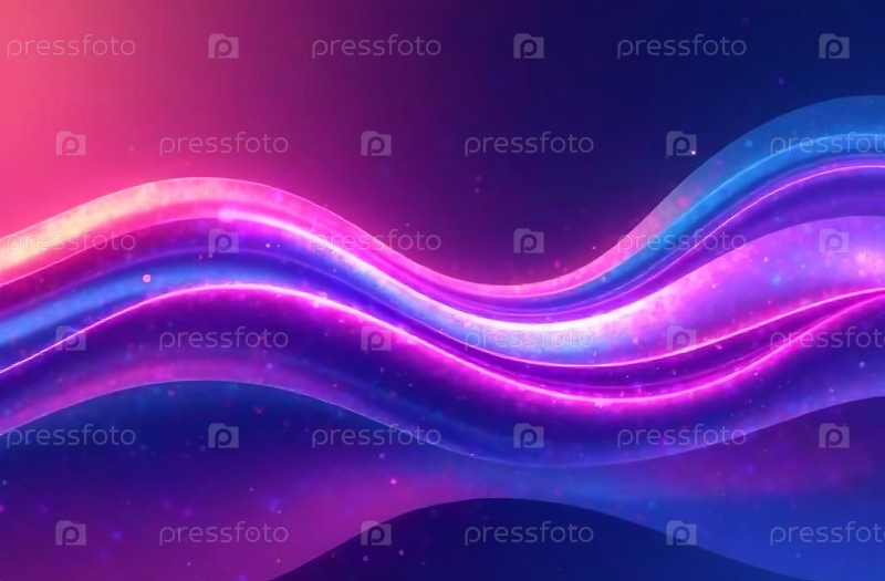 Абстрактный футуристический фон, движущиеся неоново-фиолетовые волны. Генеративный ИИ
