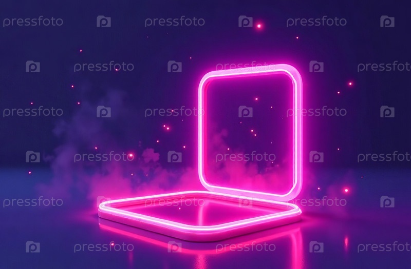 Абстрактный светящийся неоновый прямоугольник, виртуальный фон киберпространства. Генеративный ИИ