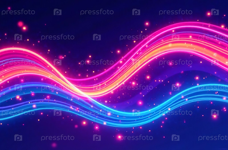 Абстрактный футуристический фон, движущиеся неоново-фиолетовые волны. Генеративный ИИ
