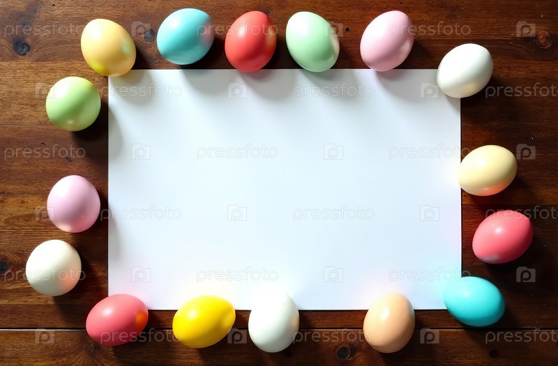 Фон с местом для текста и украшенными пасхальными яйцами. Генеративный ИИ