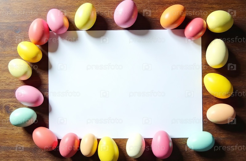 Фон с местом для текста и украшенными пасхальными яйцами. Генеративный искусственный интеллект