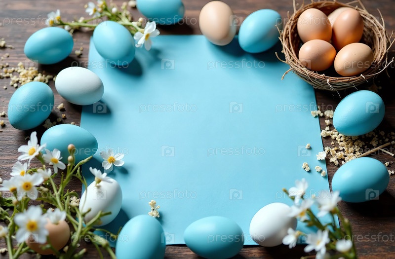 Фон с местом для текста и украшенными пасхальными яйцами. Генеративный ИИ
