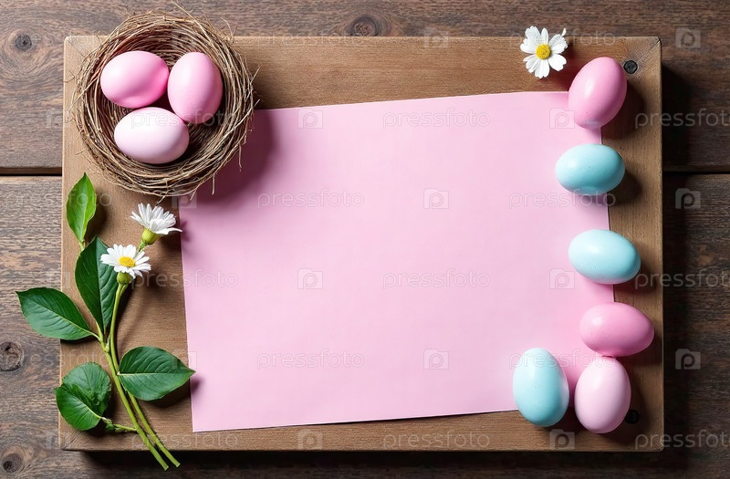 Фон с местом для текста и украшенными пасхальными яйцами. Генеративный ИИ
