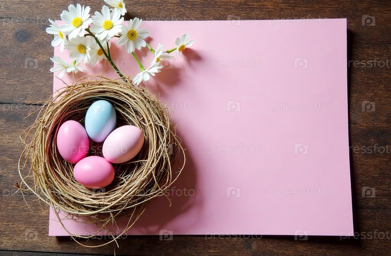 Фон с местом для текста и украшенными пасхальными яйцами. Генеративный ИИ