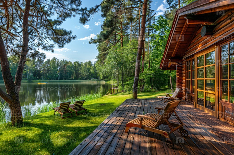 Элегантный современный дом на берегу озера с большими стеклянными стенами и пирсом