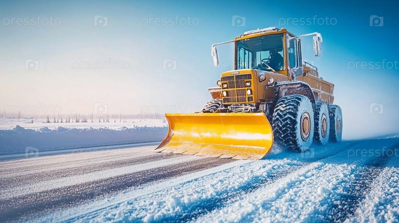 Зимний снегоочиститель расчищает дороги морозным утром
