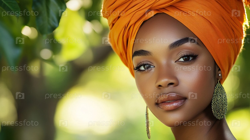 Человек в оранжевом тюрбане с декоративной серьгой в тропической среде