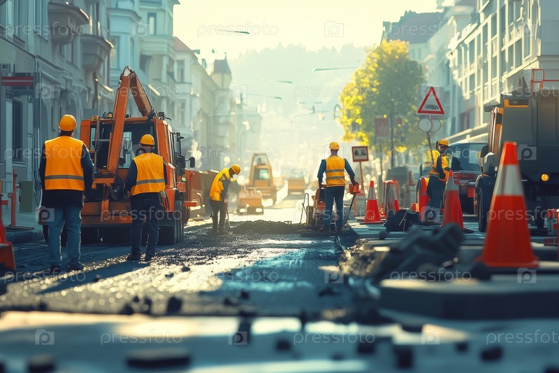 Строительство дорог под голубым небом в городской среде