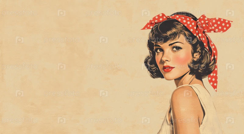 Винтажная иллюстрация женщины с красным платком в горошек