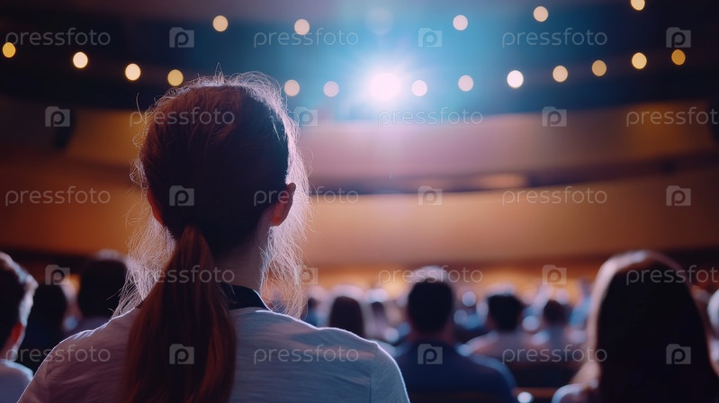 Аудитория слушает оратора в большом зале