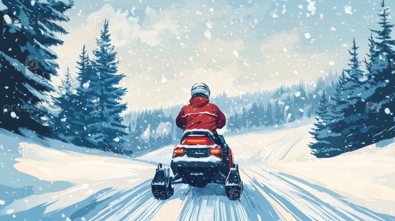 Испытайте захватывающую езду на снегоходе по нетронутым заснеженным горам, ощутив всю суть приключений и скорости