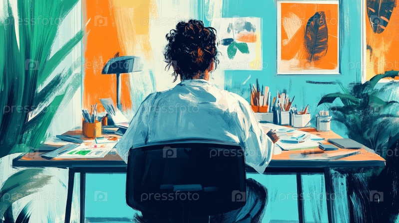 Творческое рабочее пространство: художник погружается в студийную среду с вдохновляющим декором