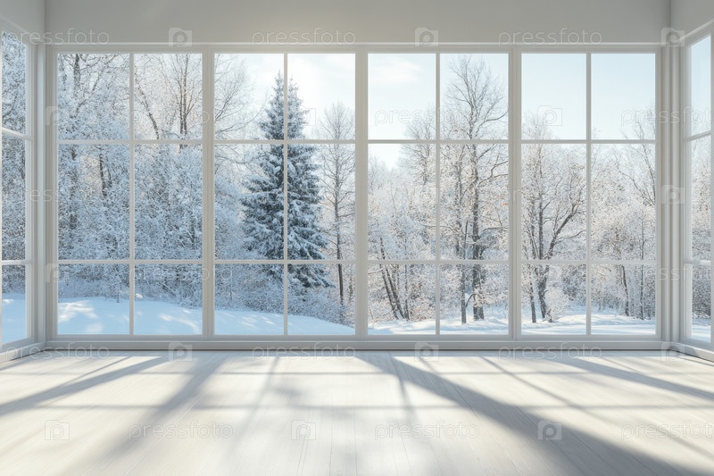 Захватывающий зимний вид через просторные стеклянные окна